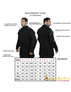 Type 6 padded medieval gambeson with buttoned front. We are not talking about ultra-thin or synthetic padded prawns available on the market. We are talking about ROBUST CANVAS and REAL PADDING, which makes the difference when looking for a real shrimp! For a comfortable and adjustable fit, this gambeson comes with buttoned sleeves. It is available in six different sizes. A more detailed table with their photographs is attached.