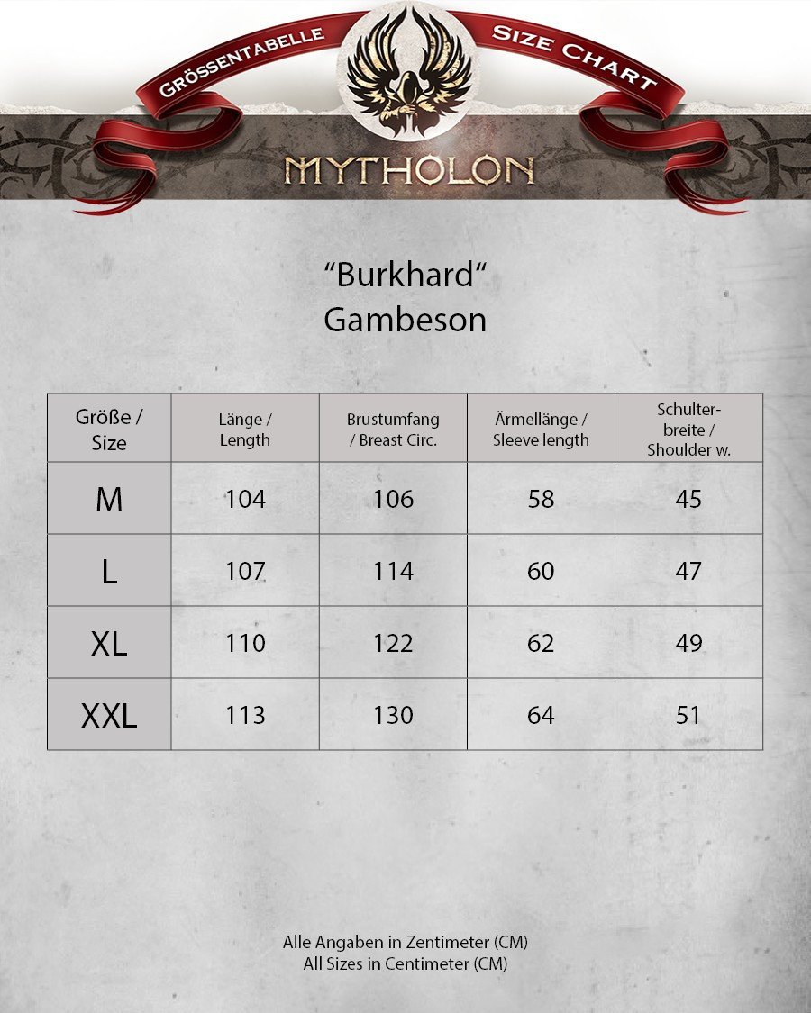 Get ready to immerse yourself in the medieval epic with our Gambeson Burkhard in elegant burgundy! This gambeson is not just a piece of clothing, it is your faithful companion on the adventures that await you. Discover why this model is the choice of the brave: