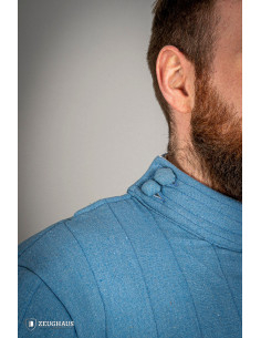 The external fabric design features a pattern that simulates linen, adding a touch of authenticity and style to your medieval attire. Stand out among your peers with this blue gambeson that combines elegance and bravery!