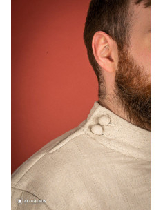 Prepare for the medieval fight with our Cotton Infantry Gambeson, in an authentic and elegant natural color! Inspired by the style of the 12th and 13th centuries, this gambeson features a special closure at the neck, adding a touch of class to your outfit. Do you need unrestricted mobility on the battlefield? Strategic cuts on the front and back guarantee optimal freedom of movement with every hit and dodge!