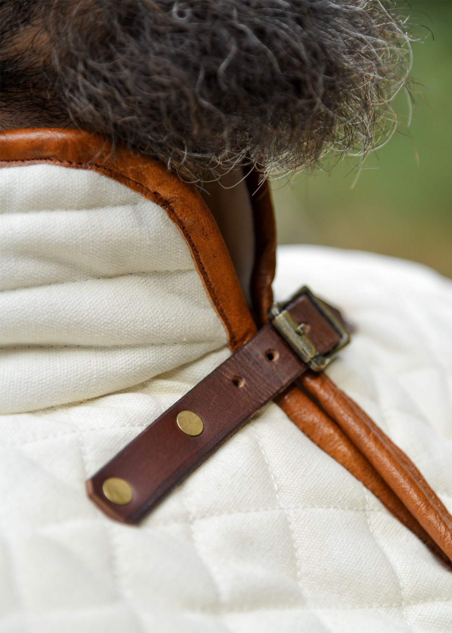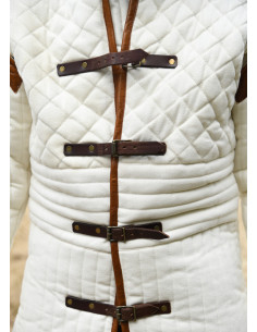 Its design perfectly meets the requirements of medieval combat. The specific arrangement of the padding – in a diamond shape on the torso and horizontal and vertical lines in other strategic areas – ensures an even distribution of impact, reducing the risk of injury and improving comfort when worn with metal armor or chainmail.