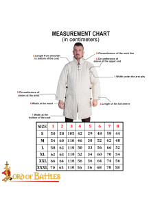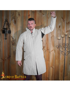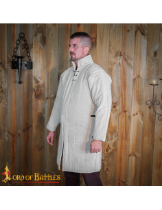 Its natural color and generous length cut, along with a high collar and wide sleeves, offer an authentic medieval look and guarantee comfort both on cool days and during long periods of action or display. This garment not only completes your outfit with a historical touch but also protects you from the cold and chafing, facilitating an authentic, safe, and comfortable experience.