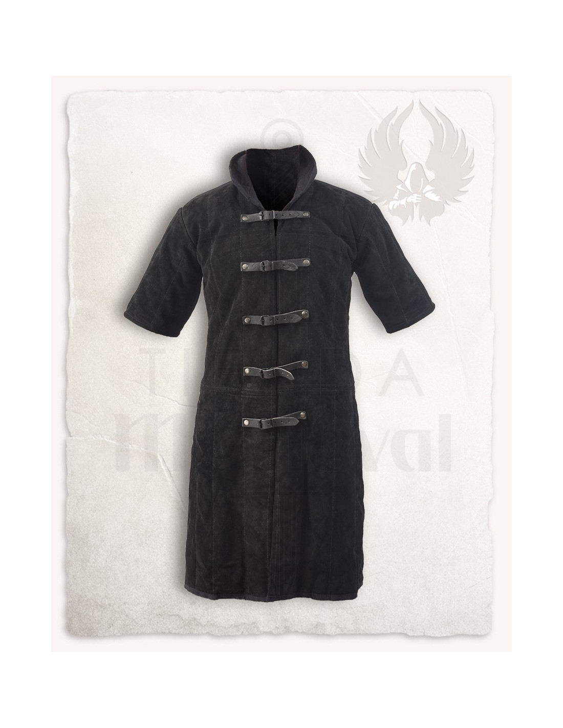 Are you looking for a garment that combines protection and style in your medieval recreations? This black suede gambeson, Leopold model, is the perfect choice to feel prepared for every adventure, without sacrificing comfort or authentic appearance.