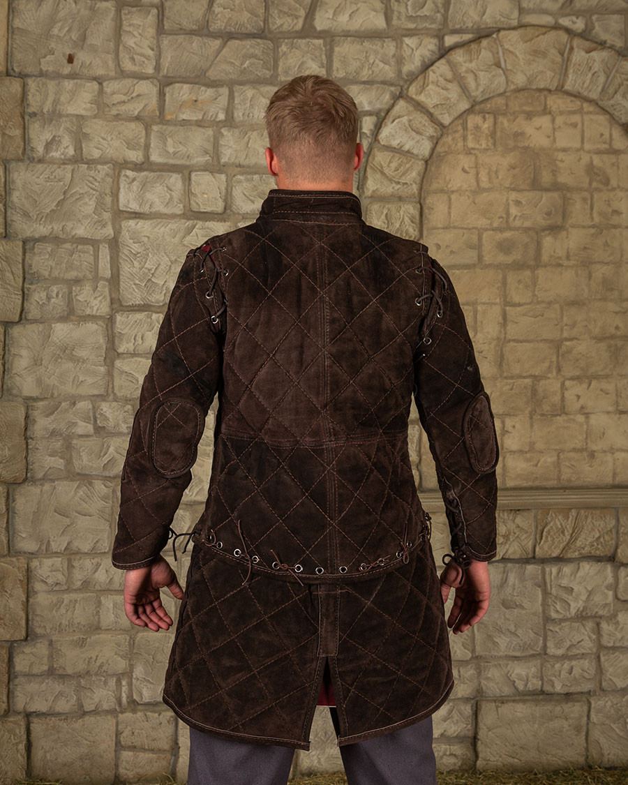 If you are looking to buy the Arthur Model Medieval Suede Gambeson in brown, you will find a piece designed for those who value fit, durability, and aesthetics with historical reminiscences.