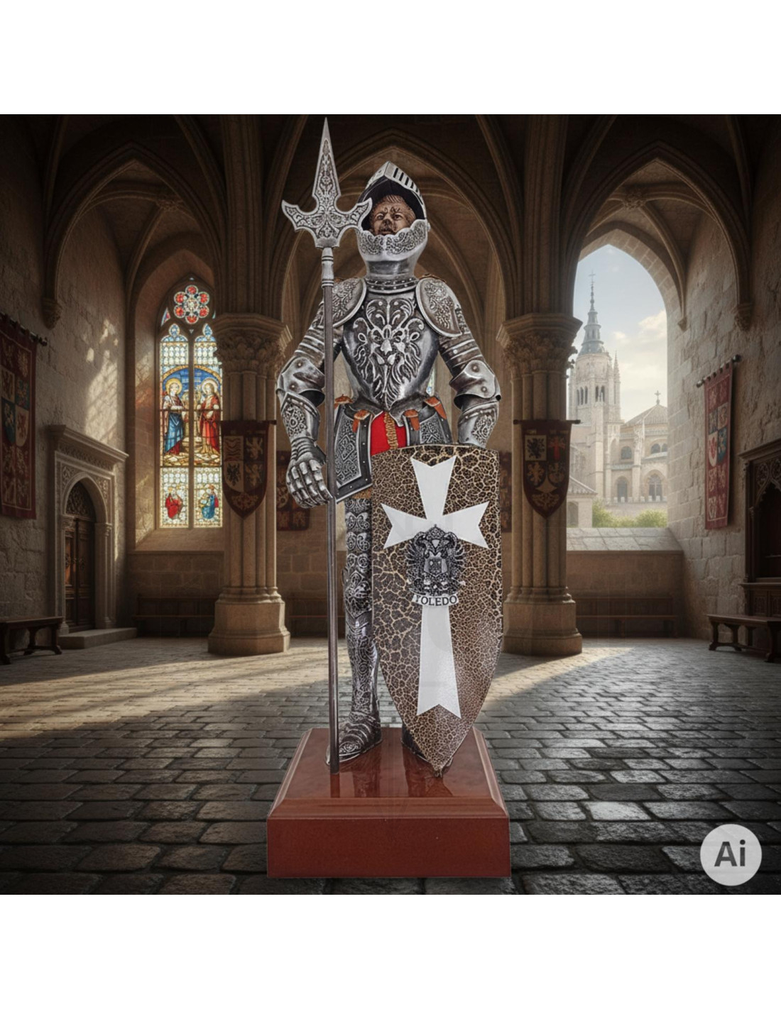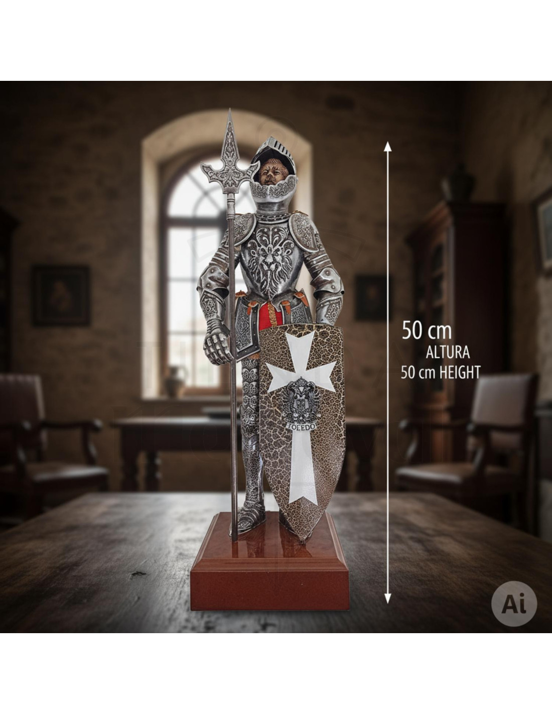 This incredible miniature represents a brave medieval knight equipped with a spear and shield, ready for battle. Its size of 50 cms. makes it a striking and detailed piece that will not go unnoticed in your collection.