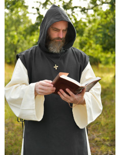 Designed in two pieces that can be combined or worn separately, it offers ideal versatility for historical reenactment, LARP, cosplay, Halloween, or carnivals. Its aesthetic recalls Cistercian attire, a symbol of community and sobriety that adds authenticity to your character.