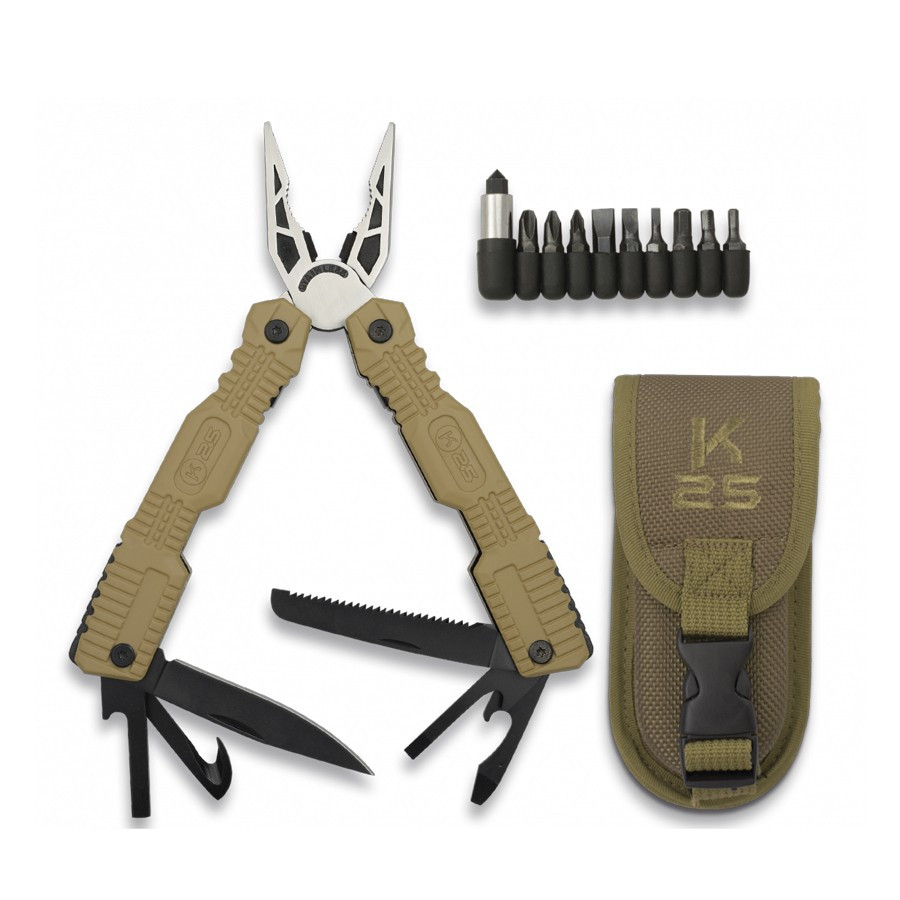 These coyote-colored multi-tool pliers offer a wide range of functions in a compact and convenient design. From cutting wires and cables to driving and loosening screws, this tool provides you with all the essential tools in one device. Its stainless steel tools ensure long-lasting, reliable performance.