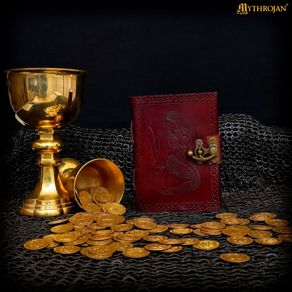 Medieval Diary with Brown Leather Cover featuring Mermaid Design