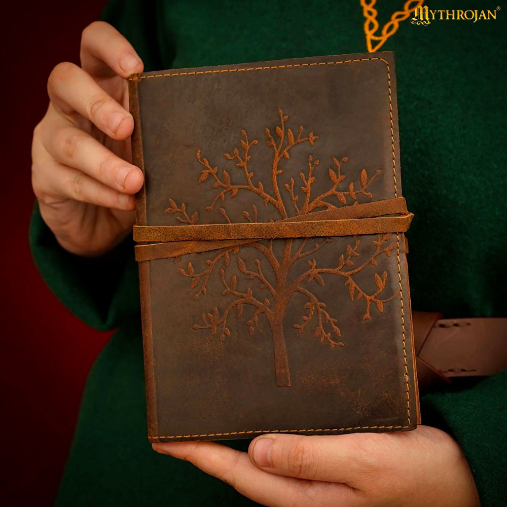 The symbolism of the Tree of Life is present in many traditions, representing the bond between generations and renewal—an enriching background that enhances the emotional value of the medieval leather cover journal with Tree of Life design.