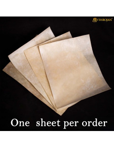 The presentation in single units allows for careful detailing without waste, and its origin in natural leather guarantees durability and a noble finish. For those looking to purchase a Medieval Parchment Sheet made of goat skin (13x18 cm.), this item offers the perfect combination of historical aesthetics and contemporary functionality.