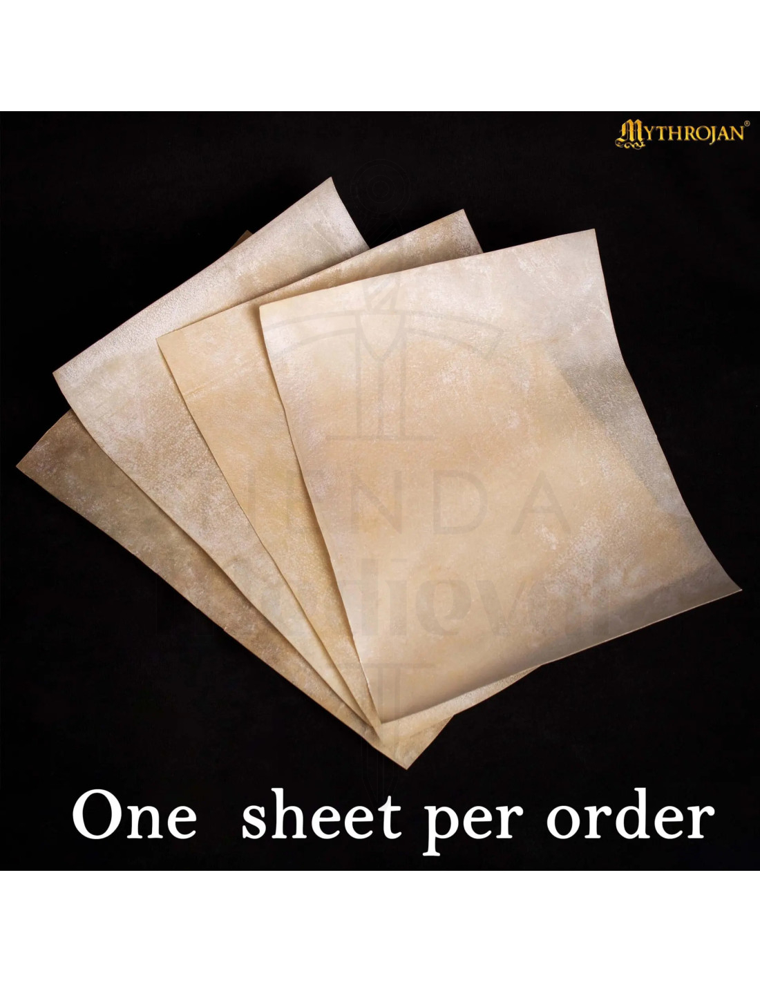 This sheet comes from authentic goat skin, crafted using traditional methods, giving it a presence and durability that you won't find in manufactured paper. The aged surface and tonal variations make each piece unique, adding character and authenticity to your writing, invitation, or decorative parchment.