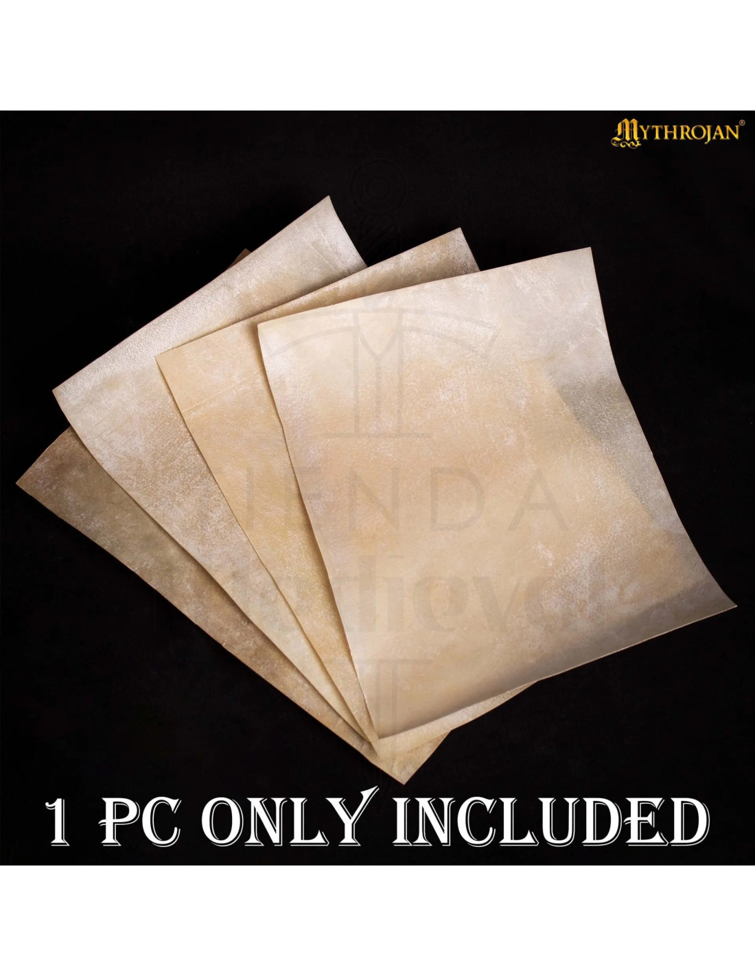 This sheet is made from authentic goat leather, traditionally crafted to preserve the character and durability of the materials used by scribes. That means each piece is unique, with variations in texture and color that enrich any project, from an intimate letter to a charming historical invitation.