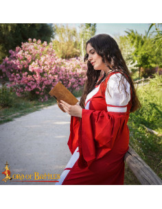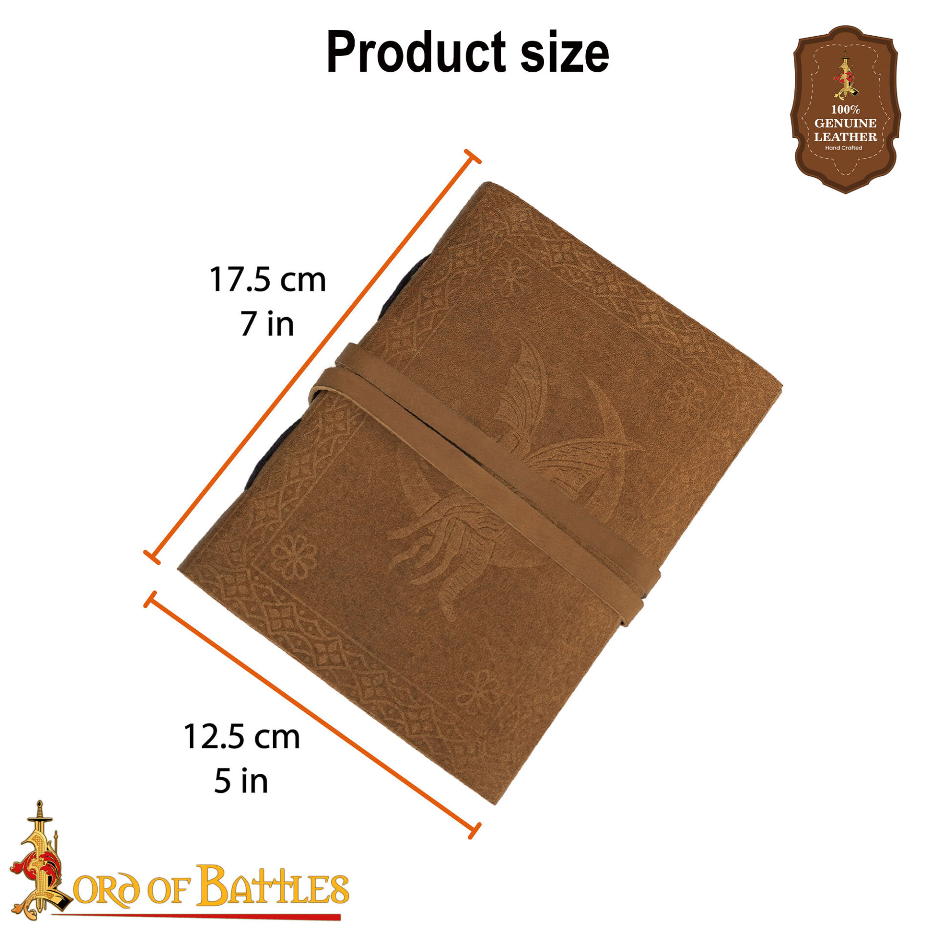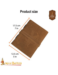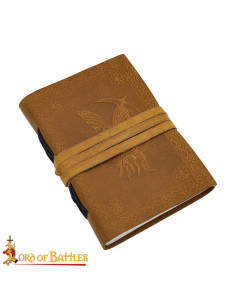 This medieval leather cover diary with a fantasy character design is designed for those seeking more than just pages: it offers a tactile and visual experience that accompanies your creativity. The rigid cover in light brown tone, with a relief showing a stylized bird and a frame with geometric and floral motifs, turns each page into a carefully presented piece, ideal for those who appreciate detail and artisanal character.