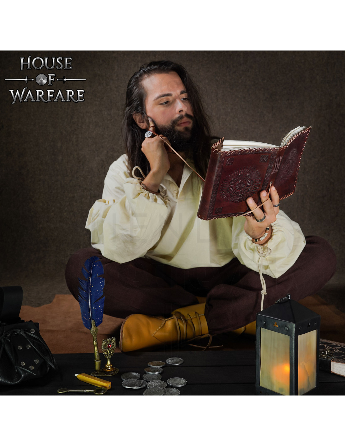 If you are interested in purchasing the medieval leather-covered diary with floral design and string closure, you will find in this piece a blend of design, robustness, and historical charm that invites you to write with intention and calmness.