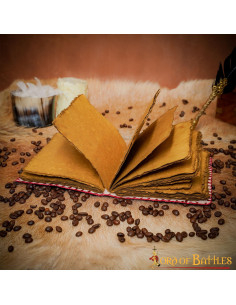 The interior reveals rustic, aged-looking pages with irregular edges that enhance any writing or drawing, transforming simple strokes into pieces with character. It is ideal if you seek a texture that enhances the writing experience, from quick notes to detailed sketches or creative plans.