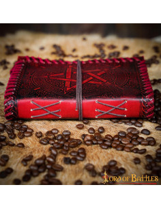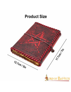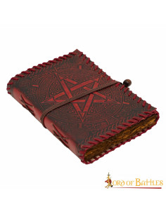 The medieval leather cover diary Celtic magic model offers a unique presence, with a dark red cover that looks like handcrafted leather, an engraved pentagram surrounded by ornaments, and the edge sewn with thick thread—details that speak of care and personality. Its sturdy, artisanal appearance not only attracts the eye but also makes it easy to hold and carry with you without losing its elegant stance.
