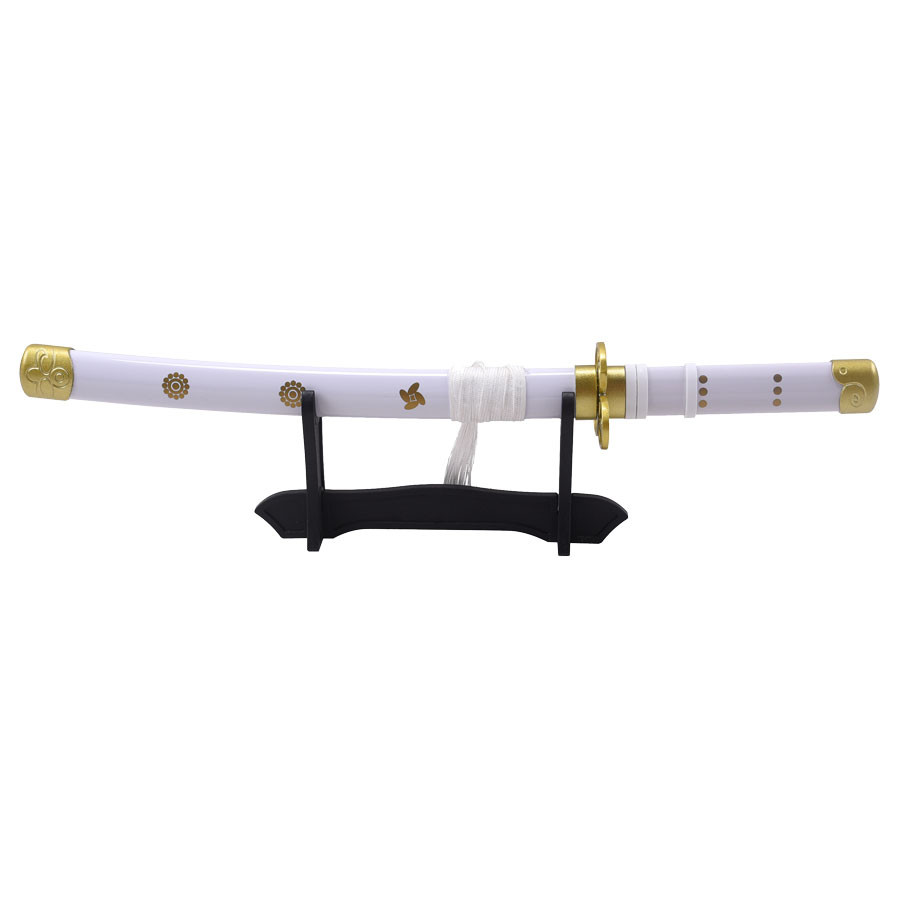 Take with you the strength and bravery of the famous swordsman Roronoa Zoro with our Enma white mini katana! Inspired by the One Piece anime, this unofficial replica is the perfect accessory for fans of the series and those looking for a unique and eye-catching piece.