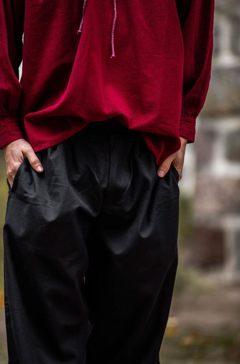 If you are looking for pirate pants that will make you stand out on any occasion, the Vincent model is just what you need. Made of 100% cotton and available in black, these pants have a cut that reaches below the knees, giving a touch of originality and style to your look.