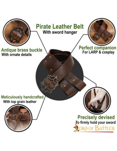 But what really makes this belt special is its buckle. An impressive SOLID ANTIQUE BRASS buckle, carefully designed to add a touch of authenticity and style to your pirate or LARP outfits. With this buckle, you can conquer the seven seas or head into epic medieval battles with confidence and style.