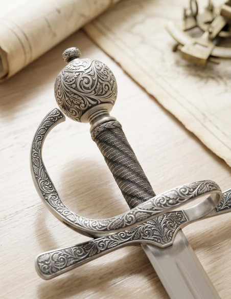 This sword, crafted in Toledo by the renowned Marto company, stands for more than a symbol of history. It is your tool to command your environment, project authority, and honor adventure. Every detail is designed to make you feel prepared for any challenge, as if you carried in your hands the same determination Drake had on his seas. It’s your legacy, your control, your power, reflected in a design that withstands the passage of time and modern competitive forms. It’s time for you to hold the true essence of the privateer and history.| Why trust? | Made in Toledo by experts, it guarantees durability and authenticity. |