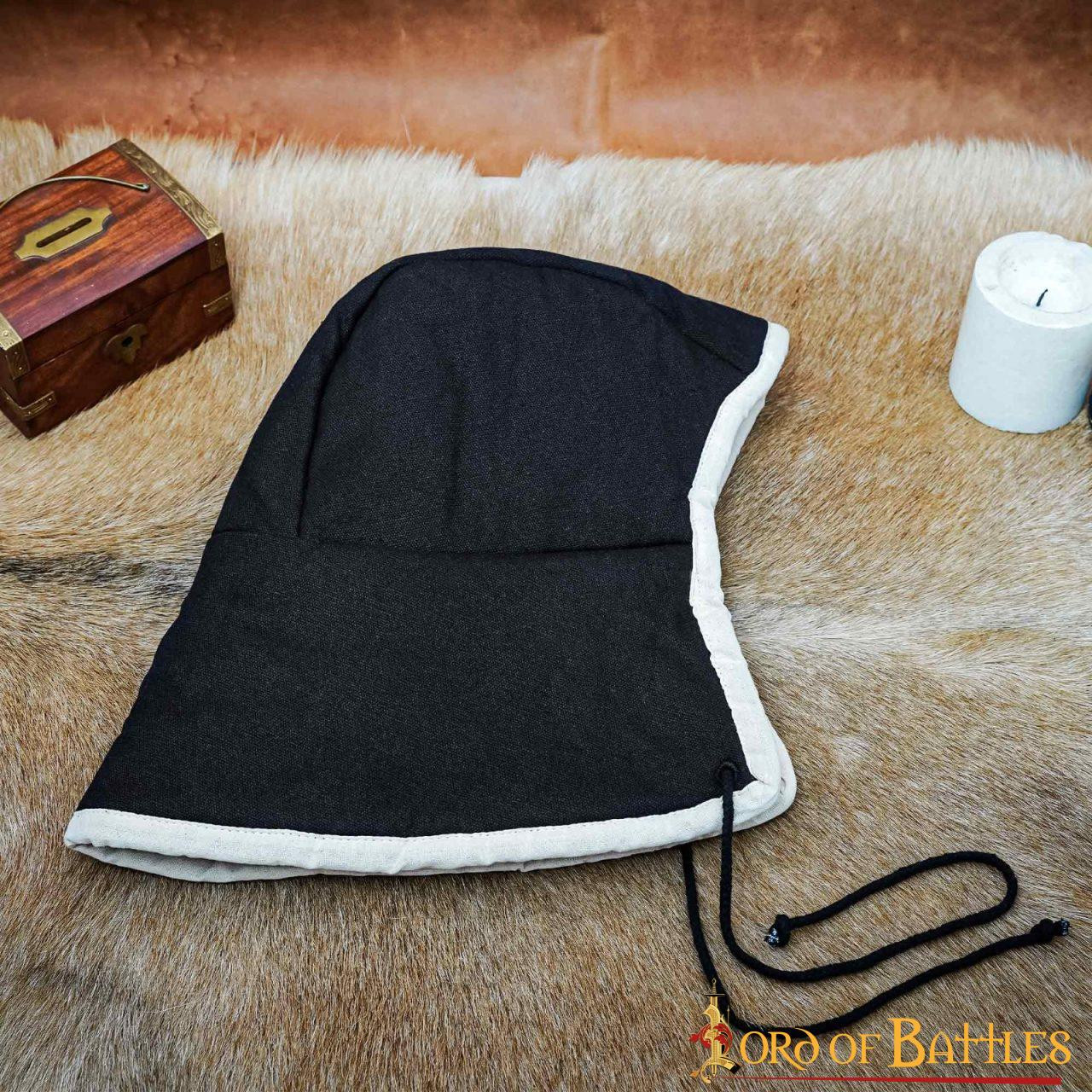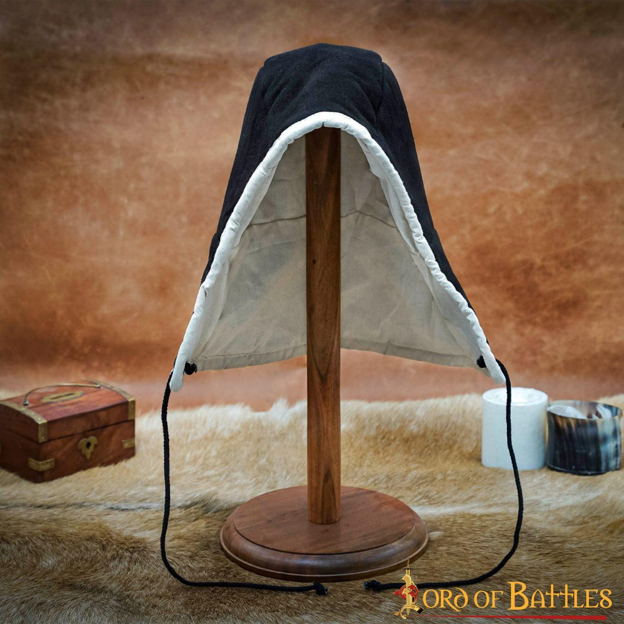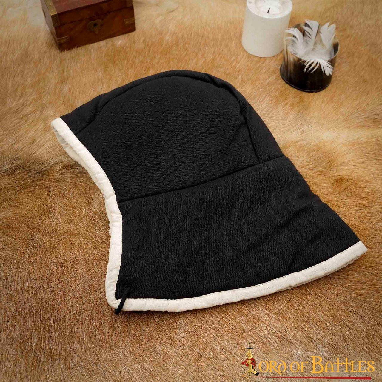 This black padded cap is an essential addition to any medieval armour. In addition to providing comfort and protection while wearing helmets, the natural-black Medieval Crespina also helps keep the head cool and dry thanks to its breathable material. Its design is elegant and simple, which makes it easy to wear and combine with any medieval outfit.