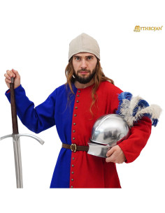 Discover the padded coif for medieval helmets by Mythrojan, an accessory designed with your comfort and historical authenticity in mind. Made from 100% high-quality Baltic linen, this coif combines lightness, breathability, and a sturdy construction perfect for your medieval reenactment, LARP, or historical events. Inspired by the design used by archers, light infantry, and citizens in the Middle Ages, it is the ideal solution for practical and flexible protection.