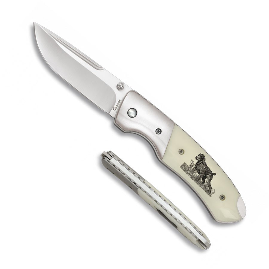 Deluxe knife with hunting dog, decorated ABS handle