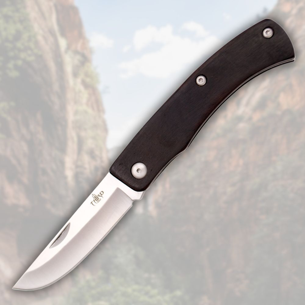The Third brand folding knife model N24E, with its elegant ebony wood handle, is an ideal piece for those seeking a durable and sophisticated tool. Its 8.5 cm stainless steel 420 blade, finished in satin, ensures a long-lasting edge and great resistance to corrosion, making it an ideal choice for daily use or outdoor activities.
