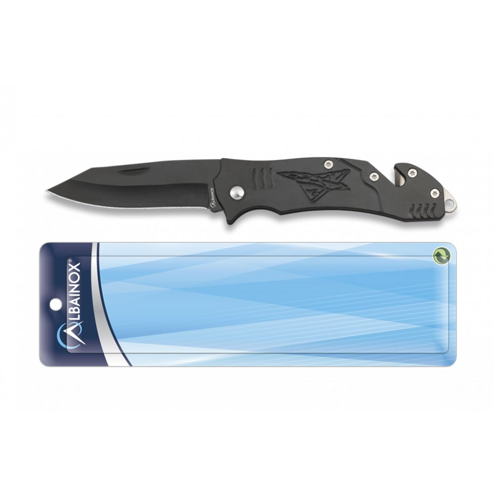 The Albainox brand liner lock rescue knife has the following characteristics: