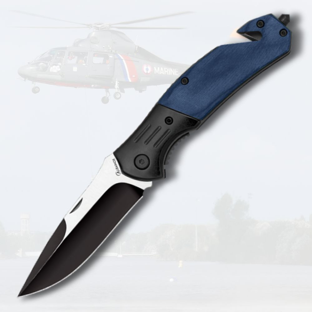 Discover a practical and versatile tool that not only stands out for its attractive design but also for its functionality. This rescue knife is ideal for those seeking a reliable and durable instrument for emergency situations or outdoor activities. Its blade, with a brushed black finish, is made of sturdy 3CR13MOV steel, ensuring durability and cutting efficiency. Thanks to its unique edge and straight design, you can make precise cuts effortlessly.