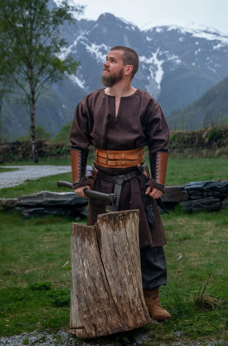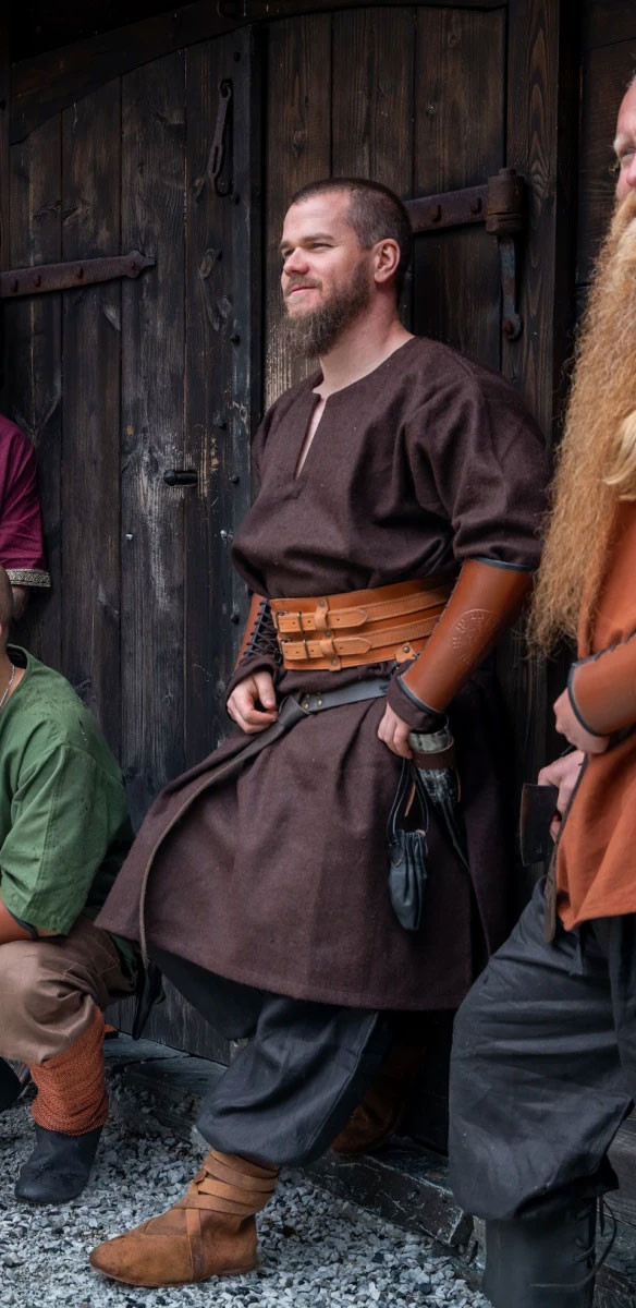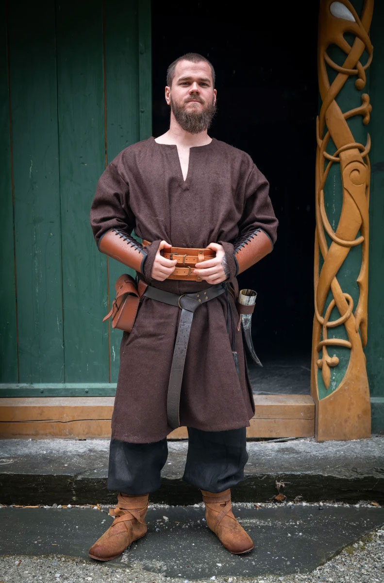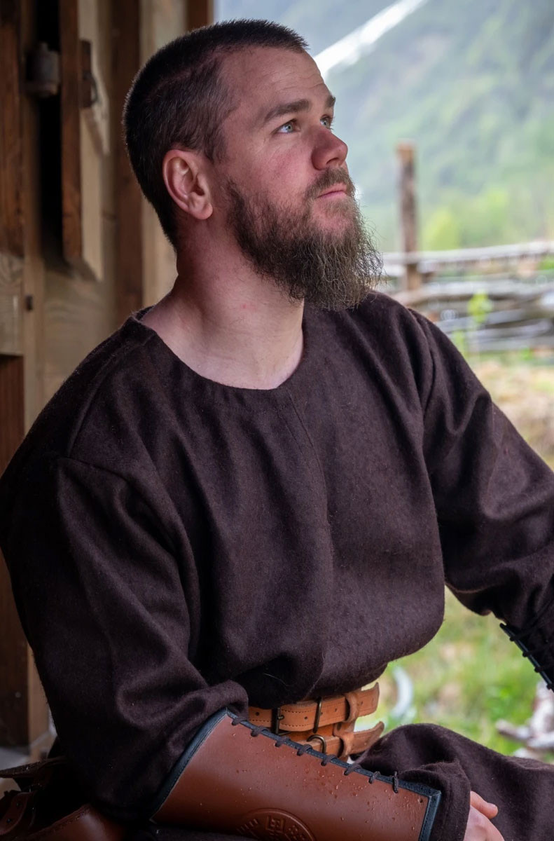 Simple cut Viking tunic Olvisson model in brown.