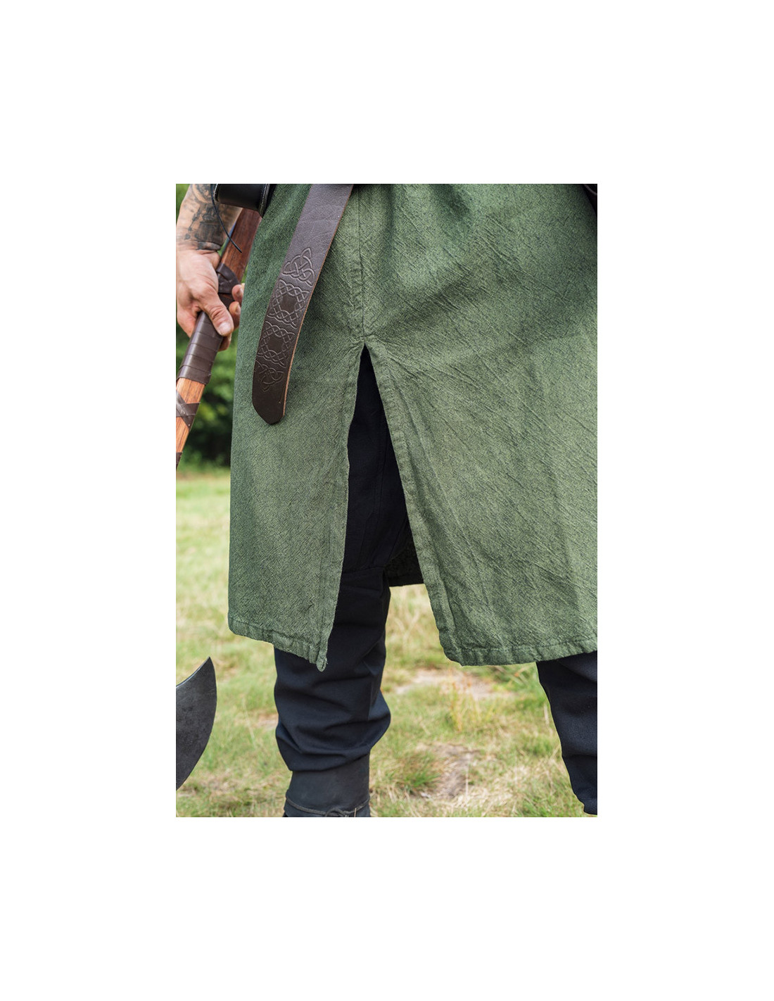 Do you want to feel like a real Viking? Then the Richard short-sleeved Viking tunic in green is just the thing for you. This classic tunic is made of 100% cotton, which makes it comfortable and breathable. In addition, its green border gives it a touch of authenticity and style.