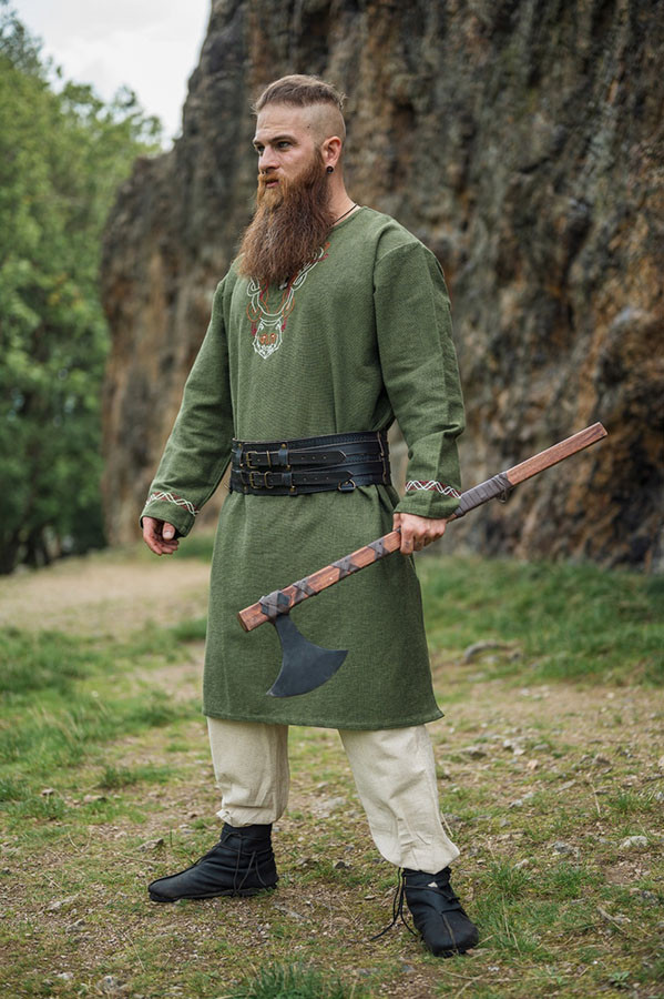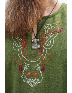 Discover the incredible Freki Viking Tunic with hand embroidery in green. This unique and original piece is made of 100% cotton, which makes it soft and comfortable to wear. In addition, its design with hand embroidery gives it an authentic and handmade touch.