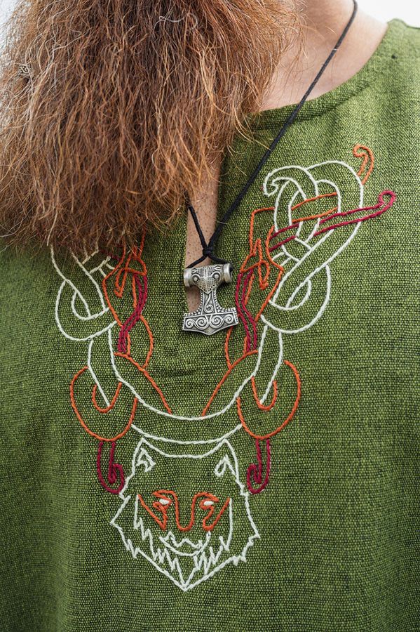 Inquiry about Freki Viking tunic with hand embroidery, green color