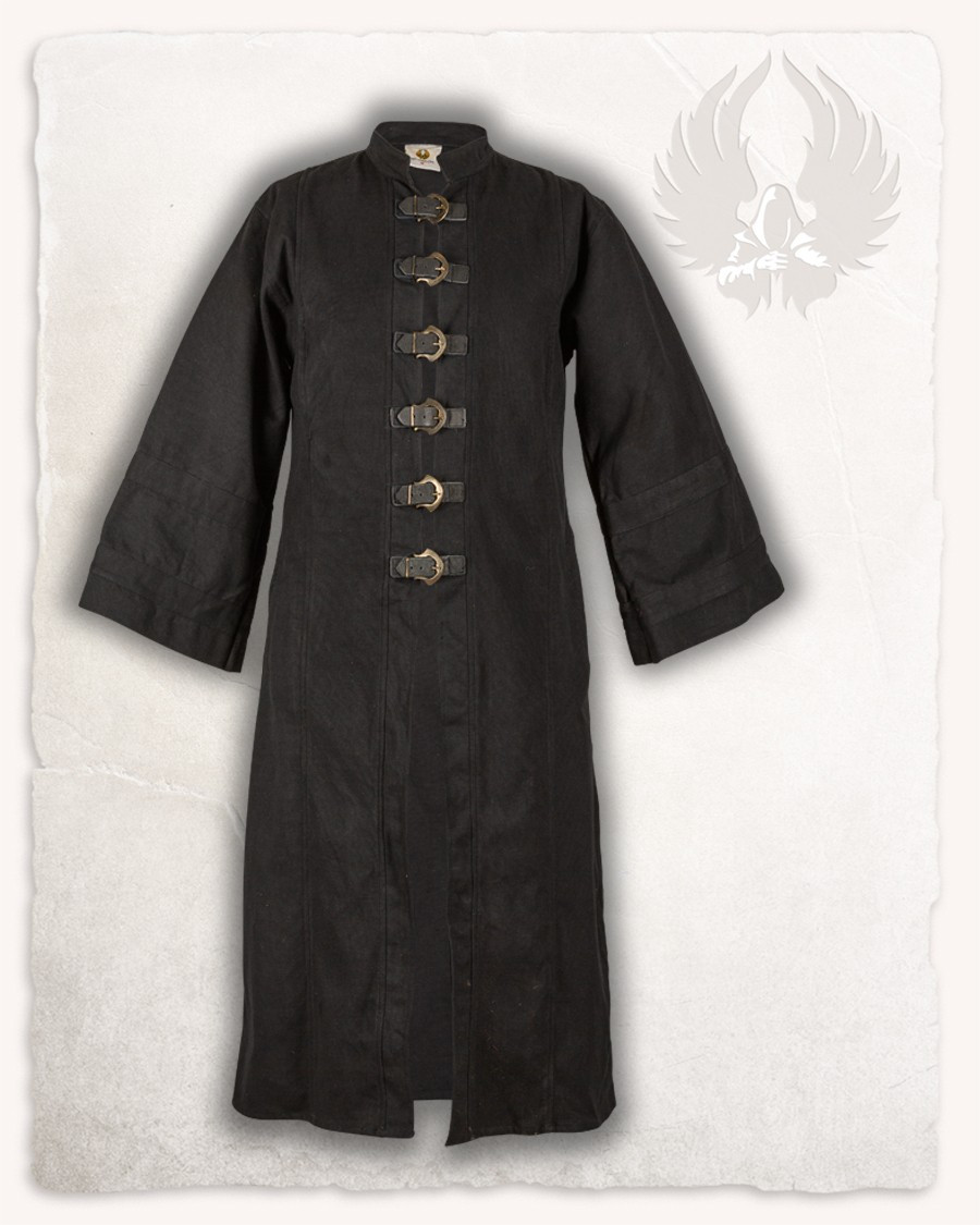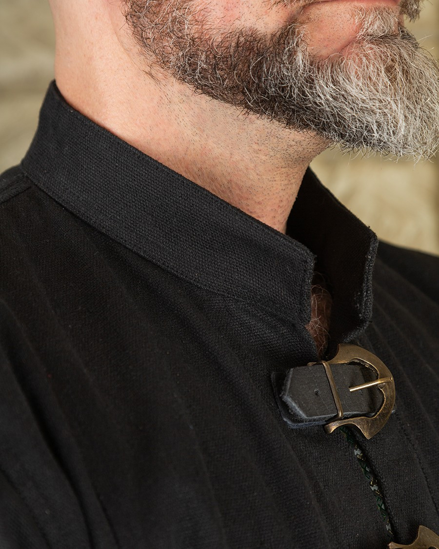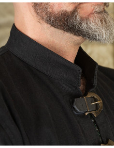 If you are a magician or a cleric, the Oberon tunic in black cotton is the garment you need to complete your outfit! This tunic is not only stylish, but also practical. Like a coat, it is closed with six wide leather straps. The high collar and the applications on the wide sleeves give it an official and uniformed character. But what makes Oberon special are its four internal pockets. Here you can store all kinds of magic components, scrolls and potions.