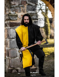 Do you want to give a touch of energy and vitality to your medieval outfits? The Bipart Frojoerick Medieval Tunic in black and yellow is a perfect choice. Made from 100% cotton, this tunic is comfortable and durable, making it ideal for any historical re-enactment event.
