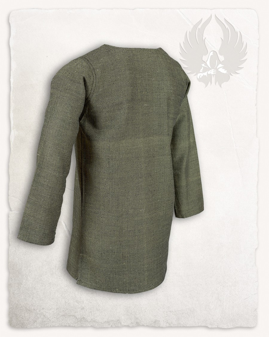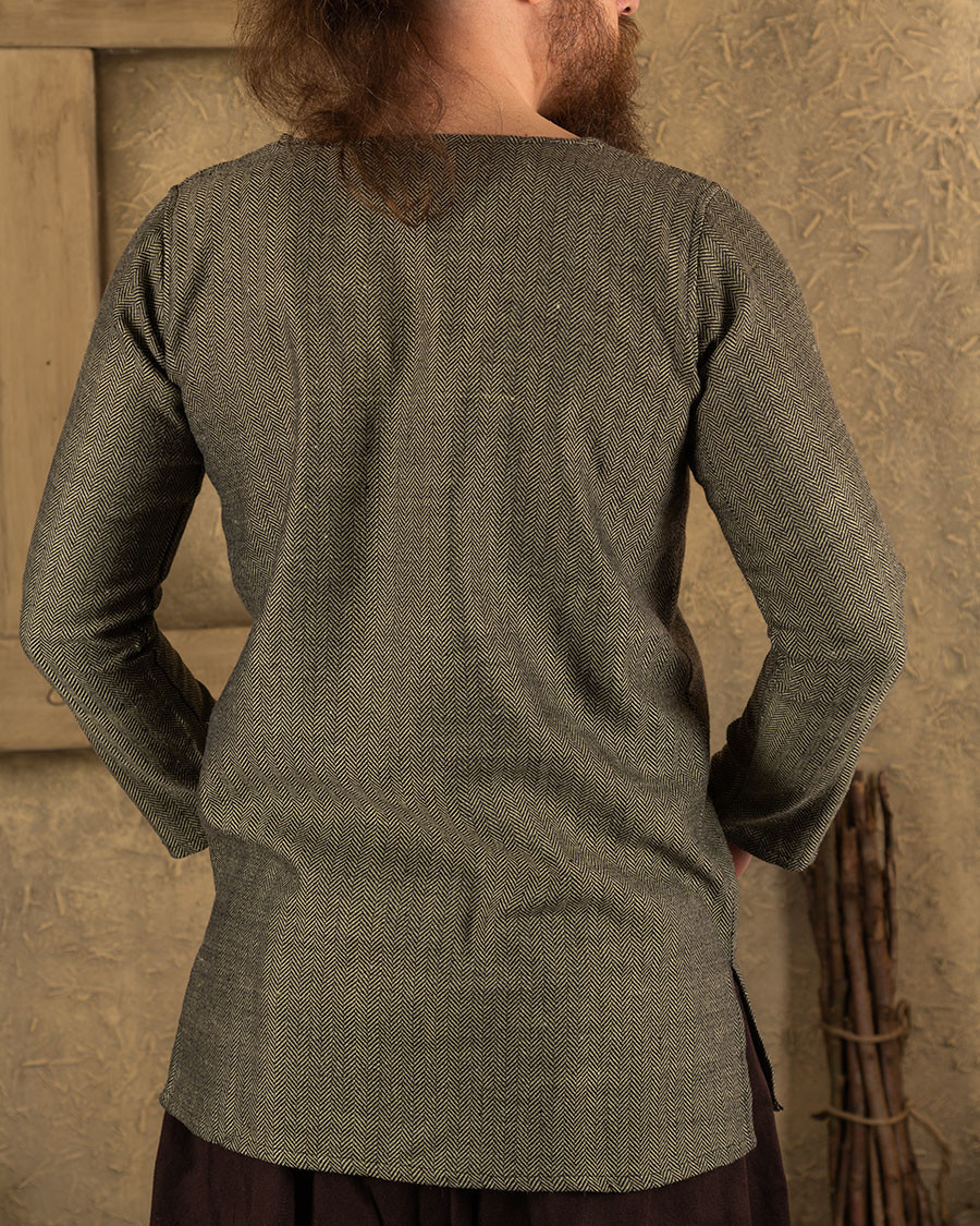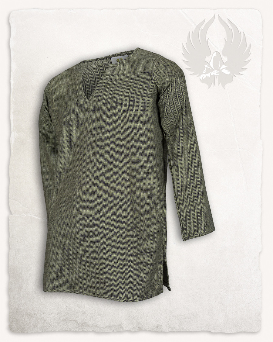 Immerse yourself in the Viking age with the Tronde tunic in olive green, featuring a stylish herringbone pattern! Inspired by the typical outer garments of the early Middle Ages, this tunic will transport you to a world full of history and charm. The Tronde tunic is a versatile garment that suits both men and women, be they beggars, warriors, or nobles. Made in a variety of fabrics and colors, this tunic becomes the ideal base for creating a wide range of costumes.