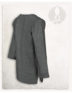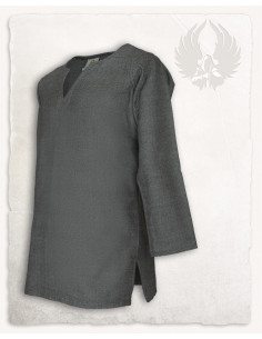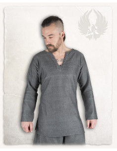Discover the authentic Tronde model Viking tunic with an elegant gray herringbone pattern. This tunic represents the typical outer garment of the early medieval period, as was common in many parts of Europe. Whether for ladies or gentlemen, beggars, warriors or nobles, the -Tronde- tunic is available in a wide variety of fabrics and colours, making it an ideal base for almost any costume.