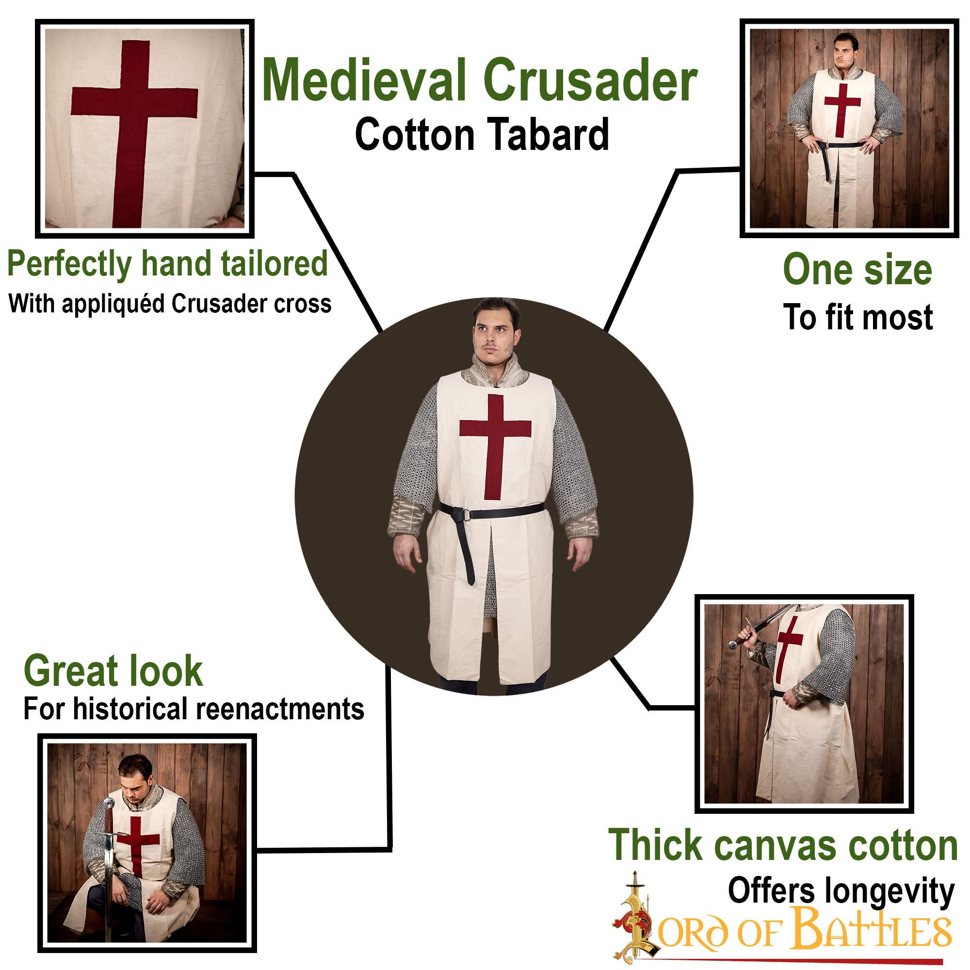 - Ideal for Historical Reenactments: The tabard is ideal for historical reenactment events, theatrical performances, period festivals and cosplay related to the Middle Ages and the Crusades.