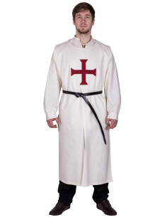 Discover the authentic Medieval Tabard of the Knights Templar in natural and red tones! This calf-length tunic is made from durable cotton fabric and features a straight fit with side slits from the waist down, as well as slightly shorter slits at the center front and back. In addition, it stands out with the Templar cross on its chest.