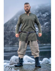 Immerse yourself in authenticity and Viking history with our Ragnar Viking Linen Tunic, in vibrant green! Made from 100% pure linen, this masterpiece of craftsmanship offers you the perfect combination of robustness and lightness, ideal for your adventures as a passionate Viking and reenactor.