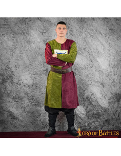 Two-tone medieval tabard, green-maroon