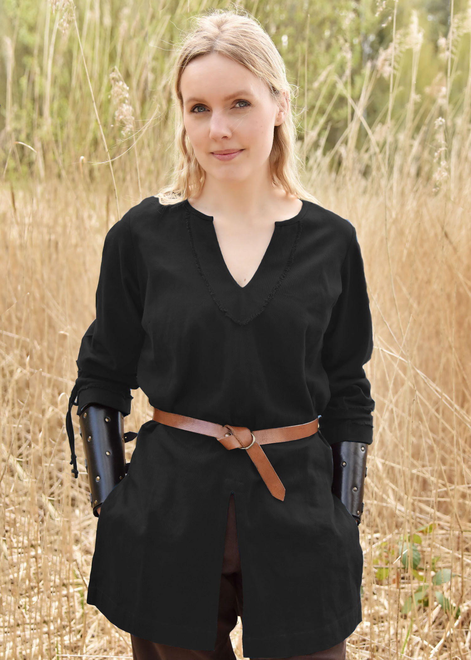 You will find the distinctive touch of this tunika in its open edges on the cord and neckline, adding a touch of originality to your medieval outfit. Perfect for representing various peoples from northern and central Europe during the time of migrations and the Middle Ages.