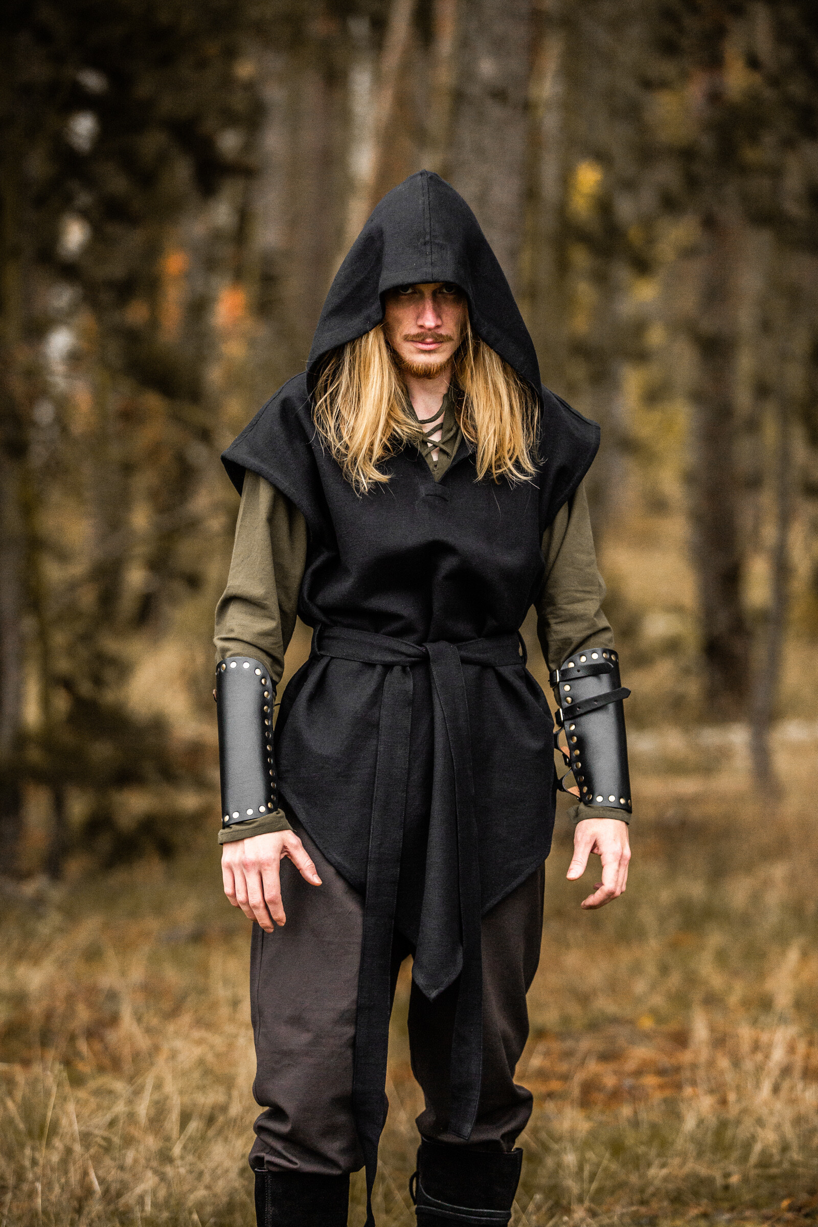 Design Inspired by the Medieval Era: With a style that evokes the days of forest guardians, this tunic combines tradition and practicality. The wide hood adds a mysterious and elegant touch, while the V-neckline and integrated belt define a flattering silhouette. Its relaxed cut allows freedom of movement, making it a versatile garment for any occasion.