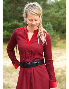 Dare to stand out at any event with the medieval long dress model Meira in red, designed by Battle Merchant. This stunning design, inspired by history, combines elegance and personalization to offer you a unique and sophisticated garment.