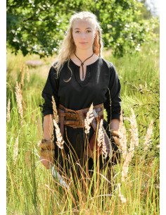 Ready to relive epic stories and unparalleled adventures? This brown medieval tunic model Yrsa transports you to a world of legends, where bravery and resilience marked every step. Its worn finish, with rustic stitching details and raw edges, reflects the battles and paths traveled, making it more than just clothing: it’s a symbol of an indomitable spirit.