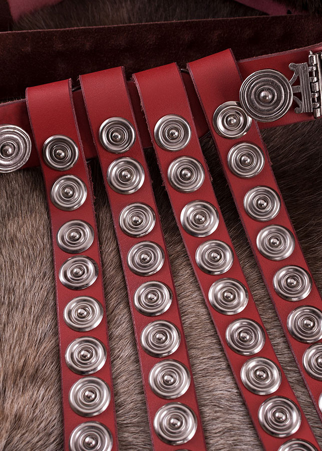 Based on the original found in Mainz, Germany, in the 1st century AD, this cingulum is made of high-quality materials, including red leather and brass fittings. Its design inspired by the Roman era of the late first century will transport you directly to that fascinating time.