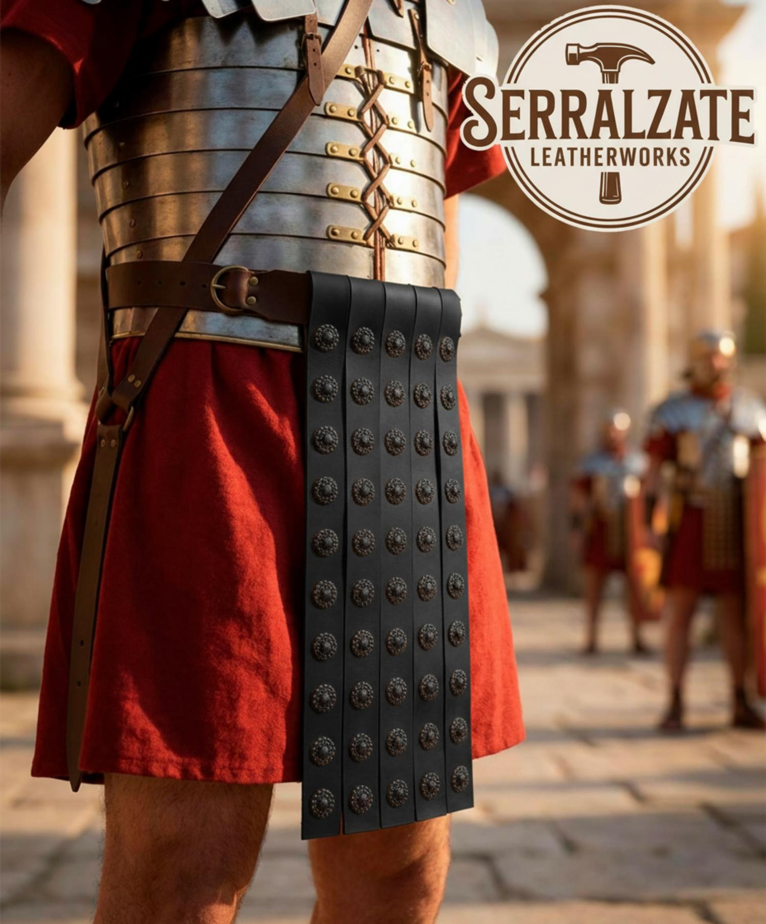 Related to the cingulum militare, the Roman Military Belt Black Leather 4 Pteryges recalls the role of the soldier as a symbol of status and discipline, present in ancient monuments and reliefs. This background adds a palpable historical value, giving meaning to its presence over any attire.