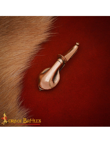 Giving this impressive fibula to a history lover is offering them a piece of the past; or simply, indulge yourself and add a vintage touch to your wardrobe. Its shiny bronze surface and intricate design will attract attention and admiration, making it a standout piece on every occasion.