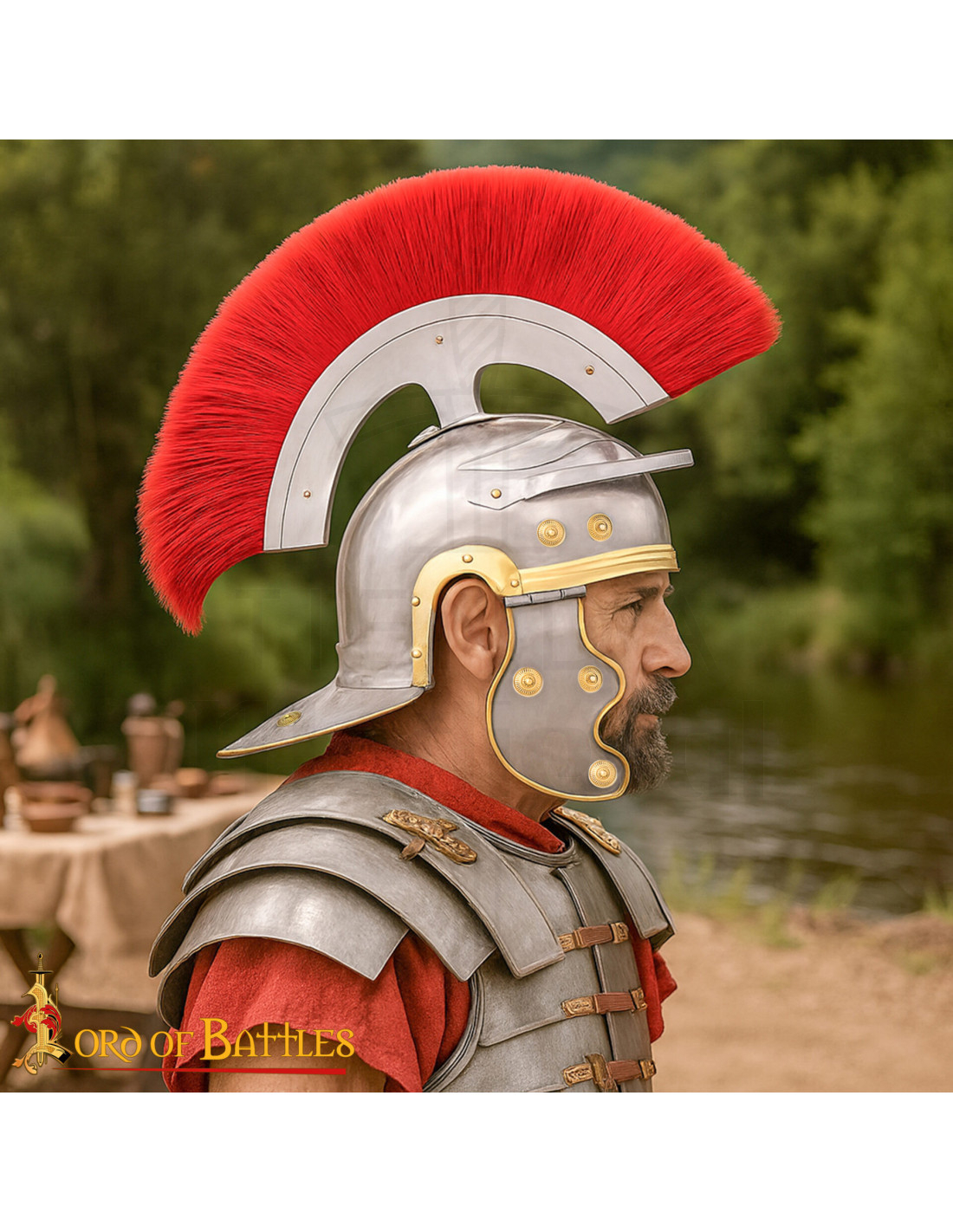 The legacy of the centurion symbolizes leadership and discipline in Roman history, making this helmet a piece with symbolic weight ideal for those who value visual authenticity. Searches like buying Roman Centurion Helmet with Red Crest, Padded Interior typically correspond to users ready to acquire a standout piece for LARP, theater, or collection.